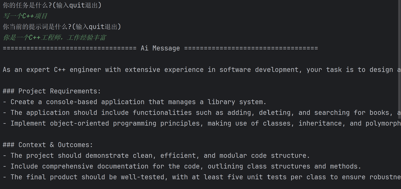 稍作修改,让我们将 AI 回复给我们的响应跟着新的用户消息一起发给聊天模型试试。代码如下: