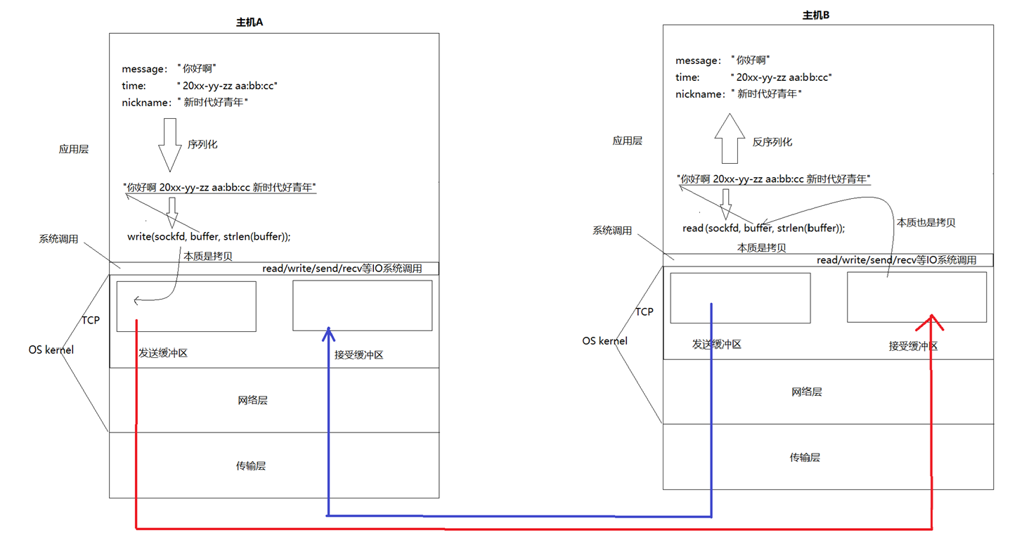 在使用 socket API 进行网络通信时,底层只能收发 字节流(或字符串) ,因此如果要在客户端‑服务器之间传递 结构化的数据 ,必须先把数据 序列化 为字节流 ,再在接收端 反序列化 回原来的结构。