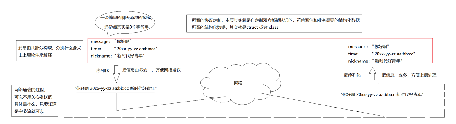 在前面的TCP和UDP网络通信中,读写数据的时候都是按照**"字符串"** 的形式发送和接收的,那我们如果不发送字符串,而是要传送一些结构化的数据怎么办呢?