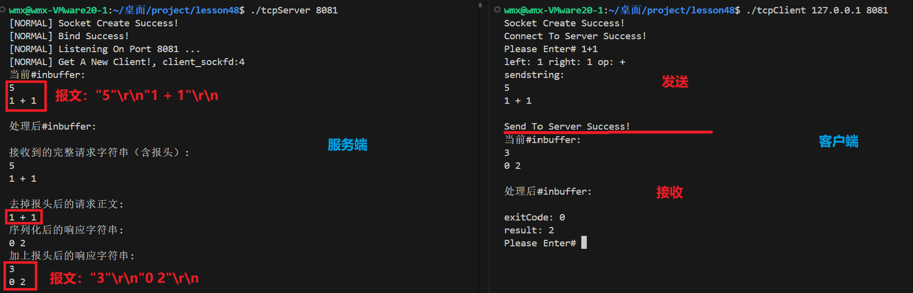 - 为防止 粘包/半包,常在发送的数据前加上 4 字节的长度字段(网络字节序),接收端先读取长度,再读取完整报文。