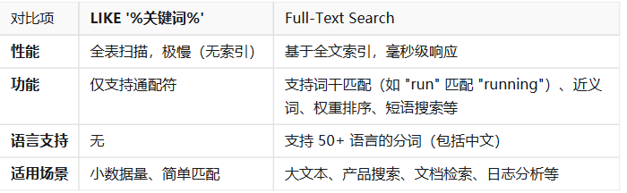 → 应优先用 CONTAINS,避免 LIKE 拖慢性能。