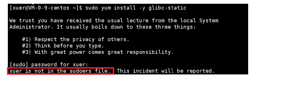 但前提是普通用户在sudoers中,如果不在,测试如下