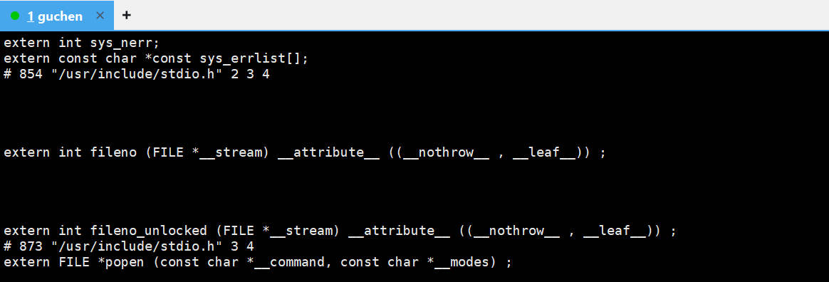 gcc -E test.c -o test.i -E是说从现在开始进行程序的翻译,进行完预处理就停止,指令也可以是这样gcc -E -o test.i test.c,-o后面跟的是存放预处理结果的文件名,如果没有,直接打在终端上