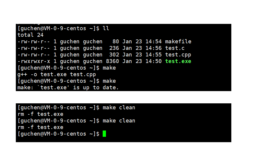 但是不推荐这样写,因为一般情况下是倒逼着去做清理,有些编译器二次编译的时候可能不是重新编译,而是把原来的可执行文件进行增添等,这样原来错的还在,所以不方便我们使用,因此清理完原有可执行程序再编译,是好习惯。