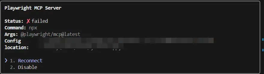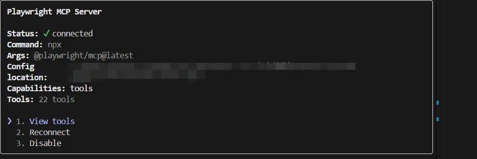 执行 /mcp 可以看到 MCP Server 的启用情况