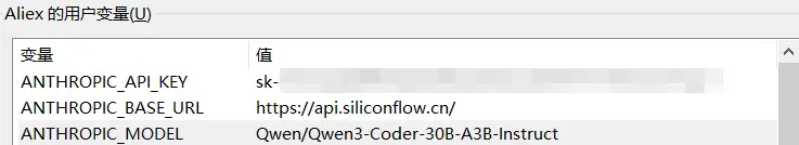 ANTHROPIC_API_KEY:平台申请的 API KeyANTHROPIC_BASE_URL:平台的 Base APIANTHROPIC_MODEL:你要使用的平台模型名称