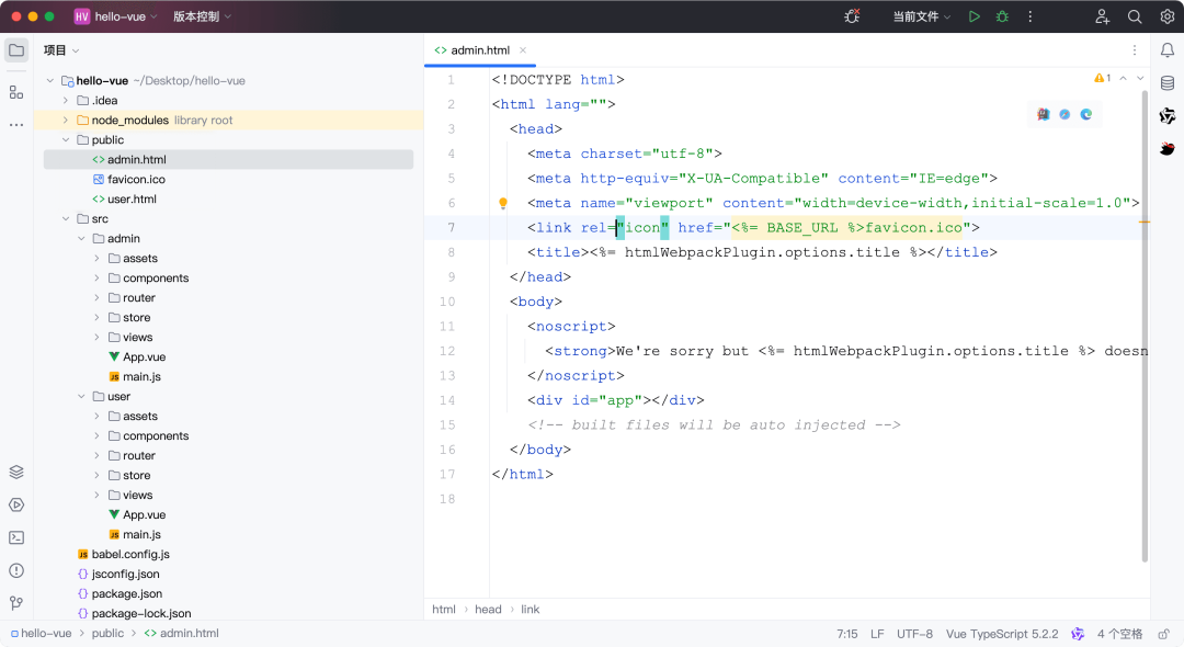 使用 Vue CLI 创建的 Vue 项目一般都是 SPA 单页面应用(只有一个 index.html)。