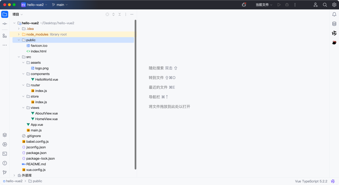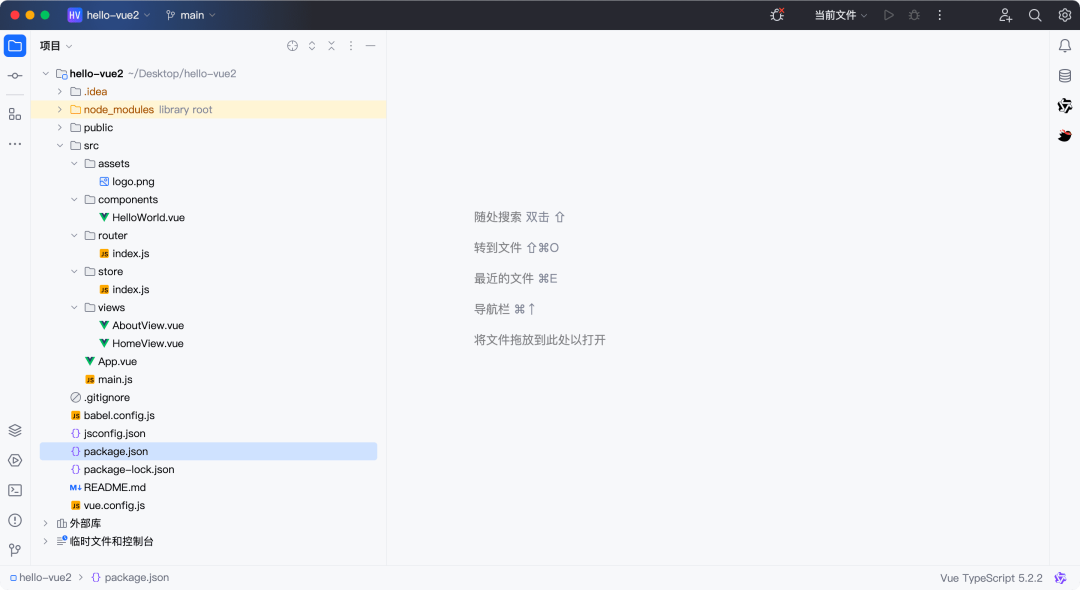 使用 IDEA 打开创建好的 Vue 脚手架项目: