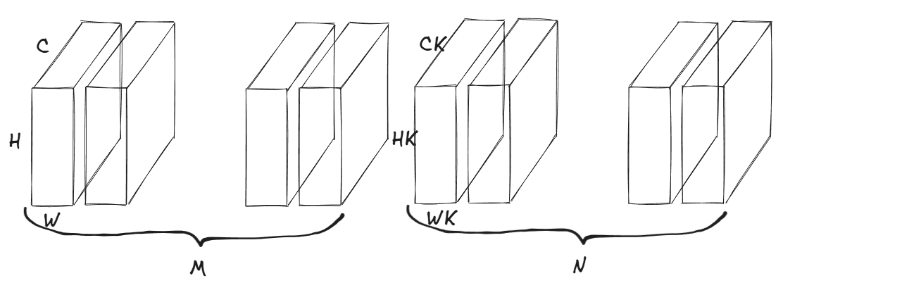 计算量 = M × C × H × W × H K × W K × C K × N 计算量=M\times C \times H \times W \times HK \times WK \times CK \times N 计算量=M×C×H×W×HK×WK×CK×N