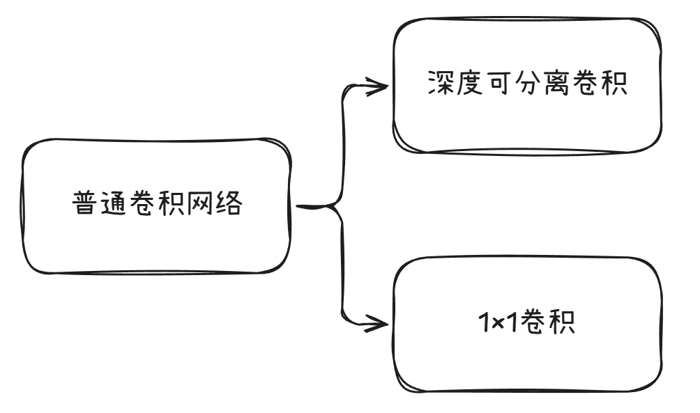 - 逐点卷积:使用1×1卷积融合通道信息