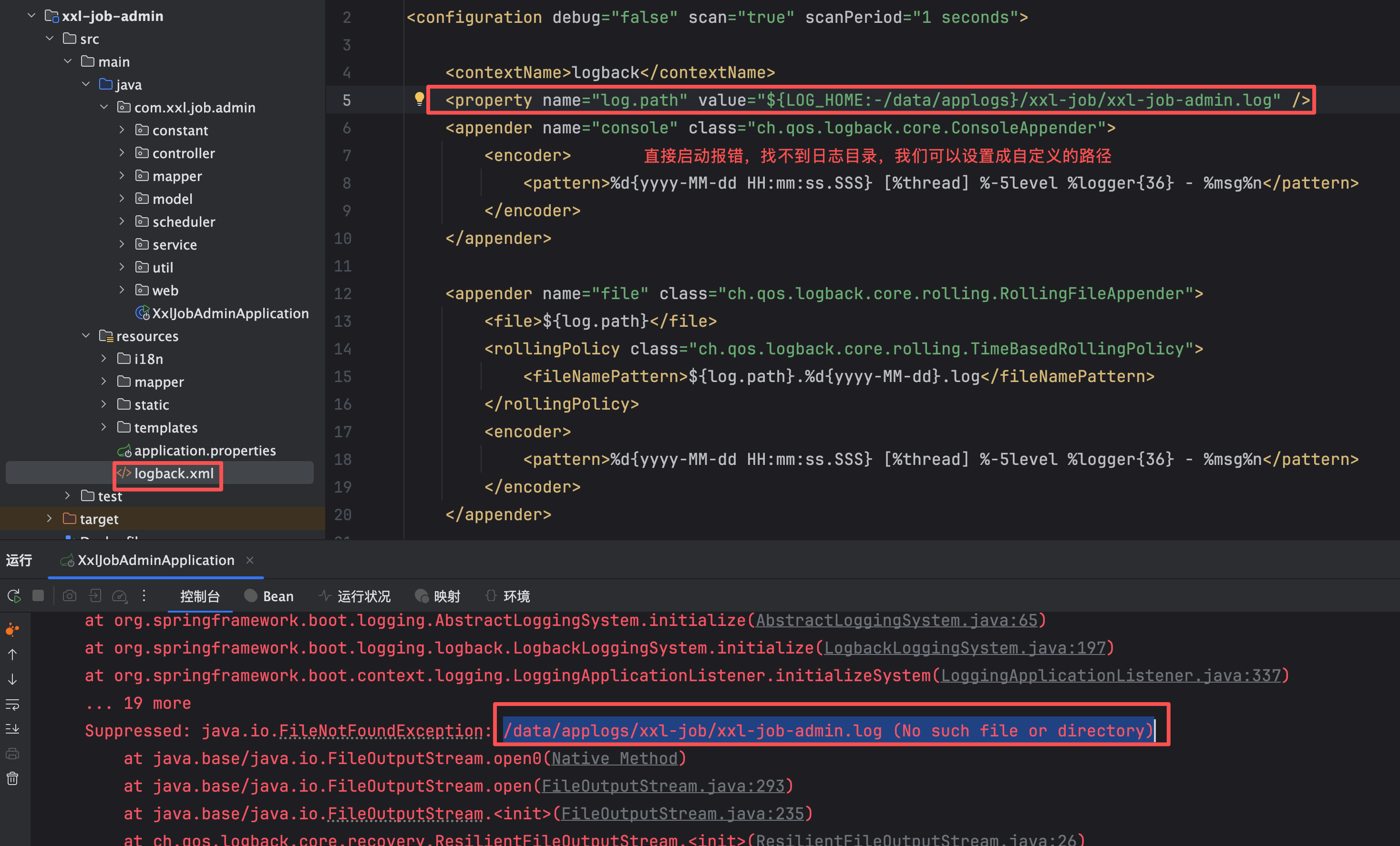 启动xxl-job-admin的main方法报错,修改日志路径成自定义路径,自己随便设置