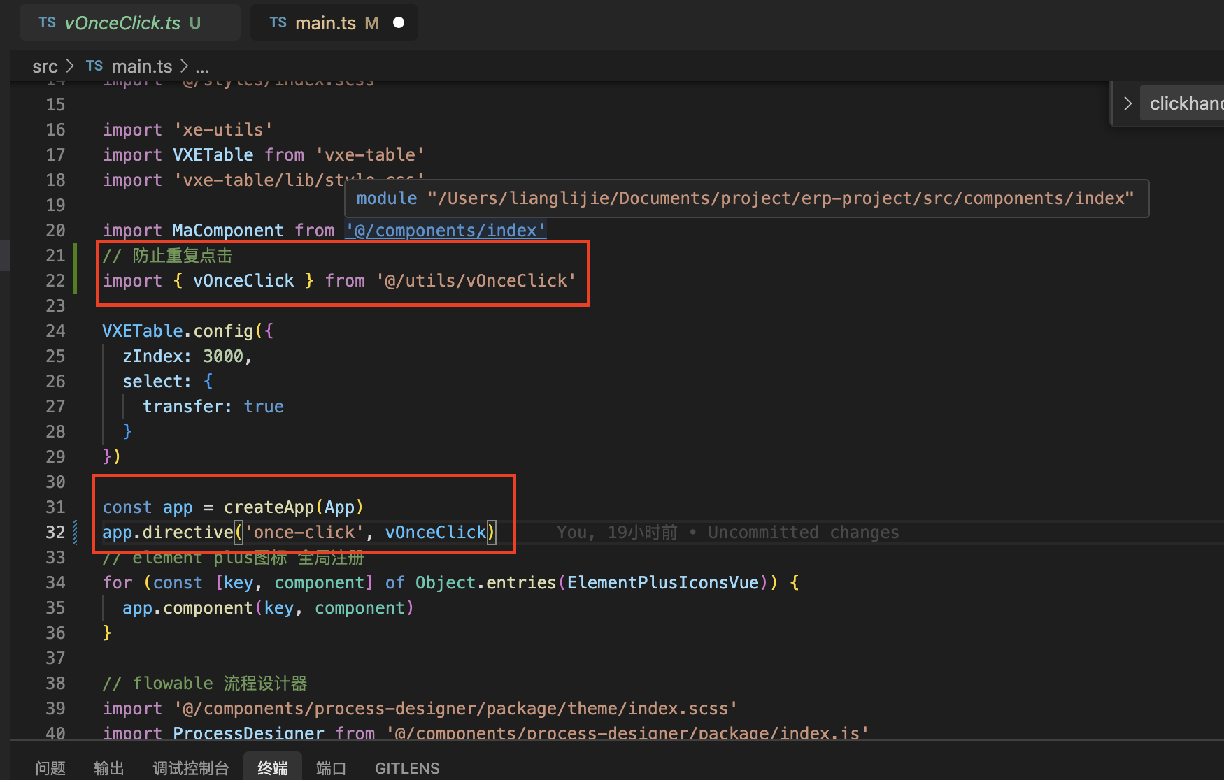 1、创建一个 vOnceClick.ts文件,代码如下