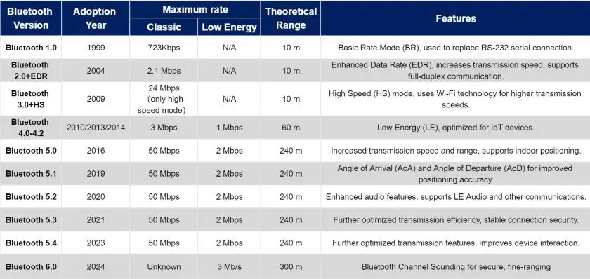 5.1 (2019) - 寻向功能: 引入**AoA/AoD(到达角/出发角)**技术,实现了厘米级的室内定位。
