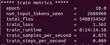 占用显卡约30G,最终loss约1.3,耗时约24min