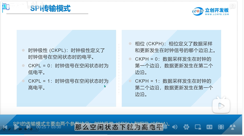 SPI有4种工作模式,主要通过CPOL和CPHA两个参数来配置:
