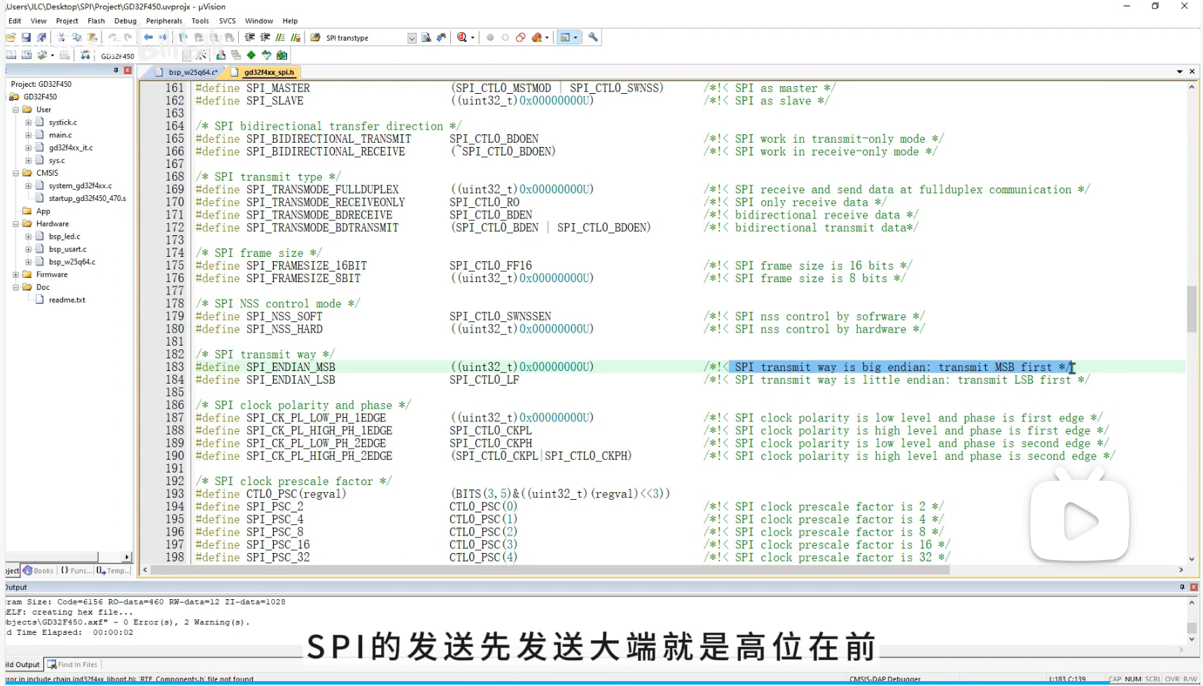 单线SPI速率可达133MHZ,而APB2最高才120MHZ,所以选择最快的2分频,大小端模式:选择高位在前(大端模式MSB)
