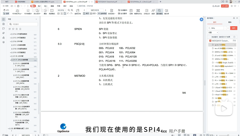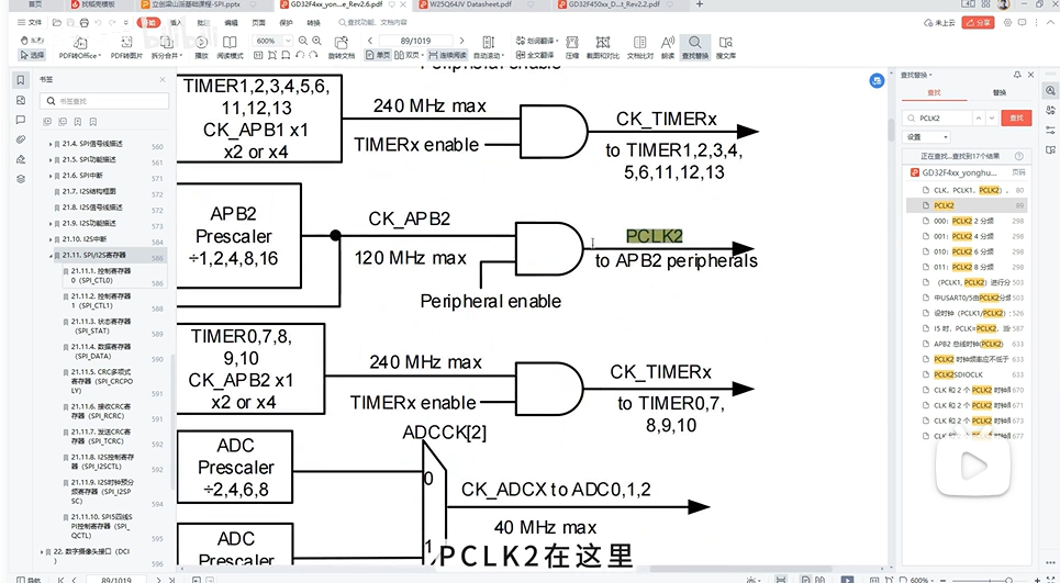 查看手册的时钟树,它是由APB2最高120MHZ得来的;在查看W25Q64的数据手册,