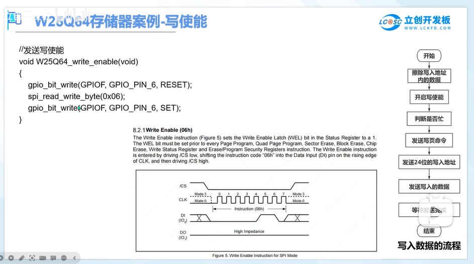 通过拉低CS端,在发送0X06出去,在拉高CS,就完成了一个写使能的操作。