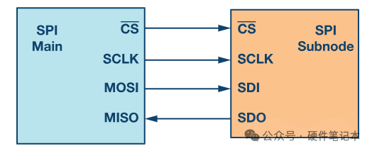 同步: 通信由主设备提供的时钟信号 SCLK 驱动,确保发送和接收的同步。