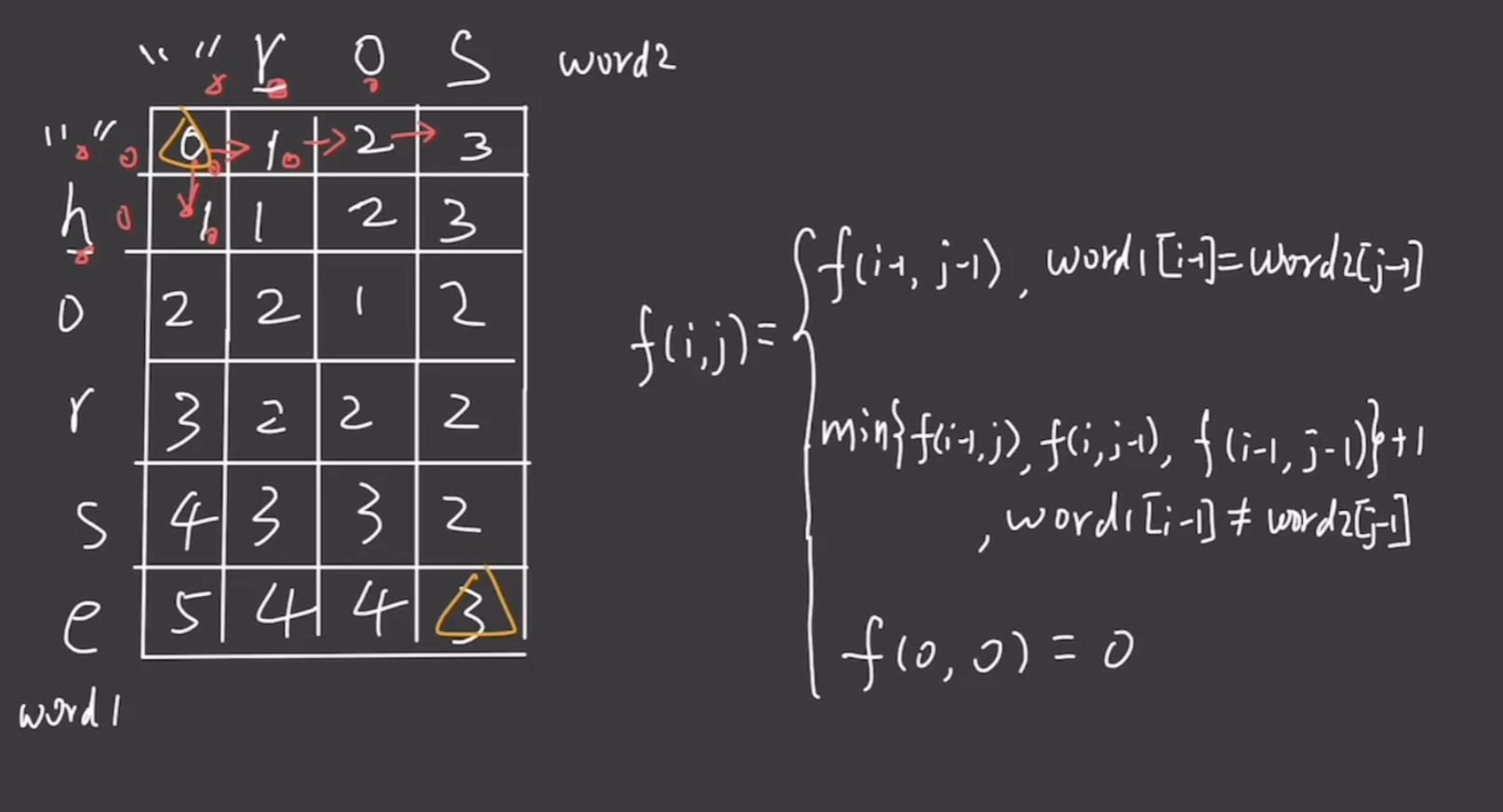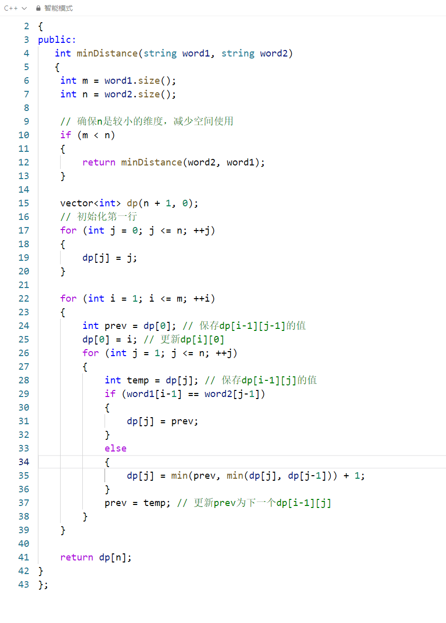 只依赖上一行和当前行的前一个值,可将二维数组优化为一维数组,降低空间复杂度: