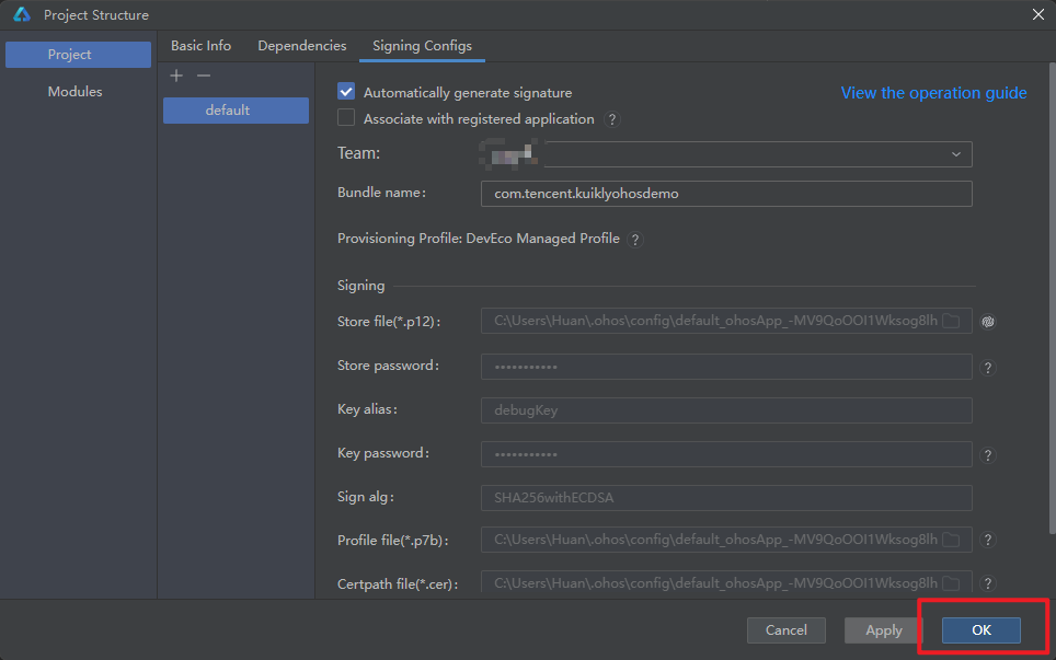 等待Signing Configs的窗口中的信息加载完成后点击Ok即可再次运行。
