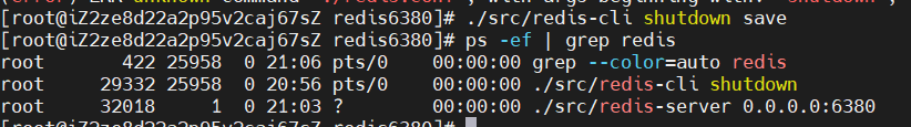 强行终止Redis进程可能会导致redis持久化数据丢失。正确停止Redis的方式应该是向Redis服务发送SHUTDOWN命令,方法为: