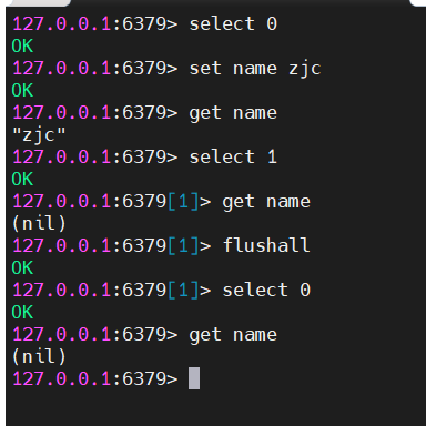 在0号数据库存储数据,在1号数据库执行清空数据命令却把0号数据库的数据给清空了: