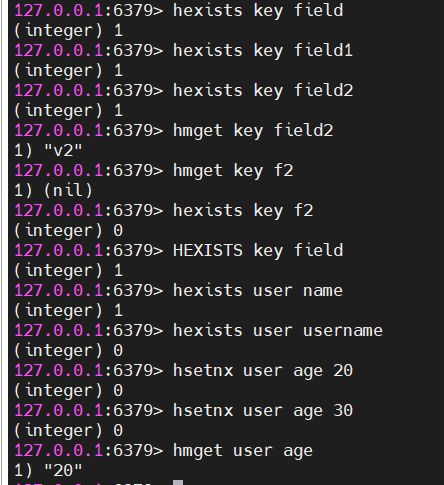 当字段不存在时赋值,类似HSET,区别在于如果字段已经存在,该命令不执行任何操作。