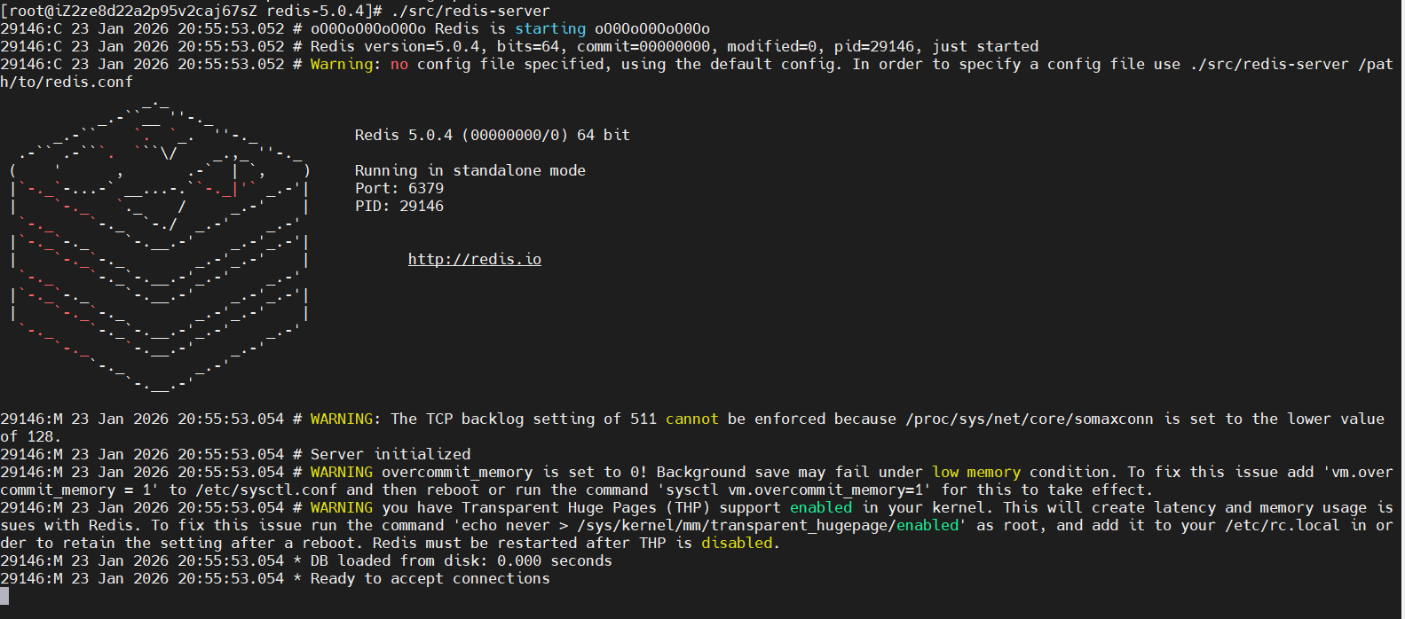 直接运行bin/redis-server将以前端模式启动,前端模式启动的缺点是ssh命令窗口关闭则redis-server程序结束,不推荐使用此方法。