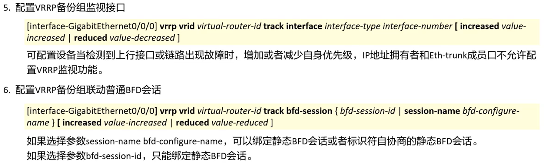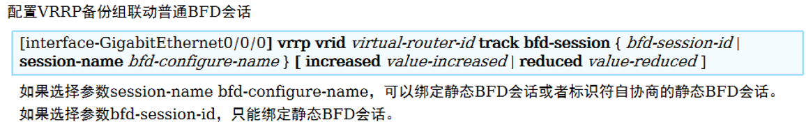 在主备设备上都要配置bfd会话,但是在backup设备上跟踪master设备,不需要配置