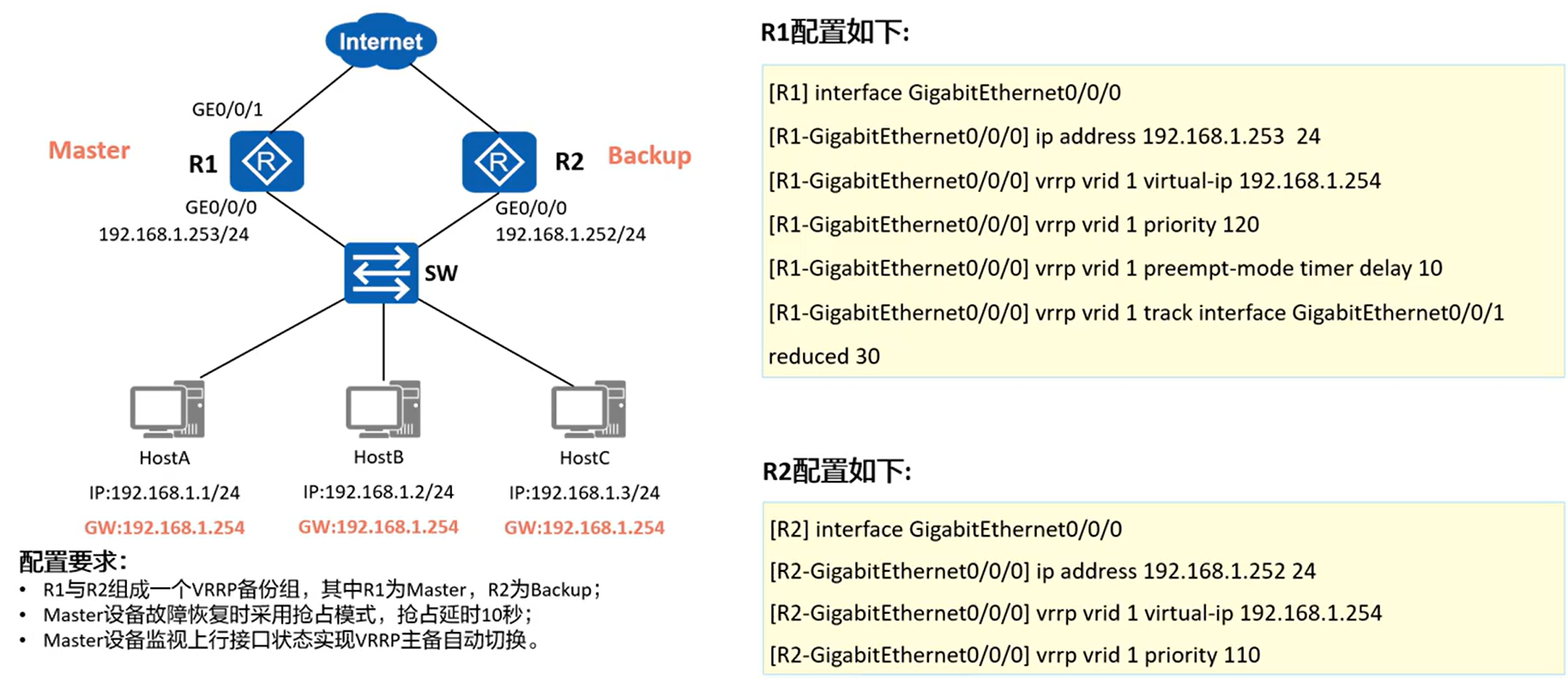 - VRRP配置网关可以灵活根据网络拓扑变化而自动切换,提高网络可靠性。
