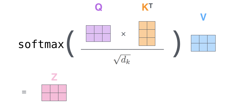 另外真正的自注意力在计算时,为了加速是以矩阵形式进行的: