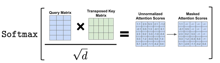 )的对应的位置会被直接遮住,使这些位置在 softmax 后的权重变成 0,于是后面词的 K/V 信息不会被当前词拿来用,也就不会影响当前词的输出表示。