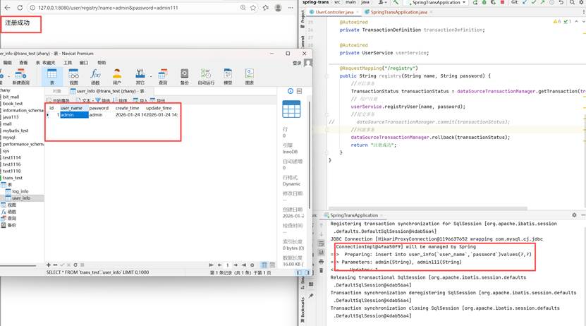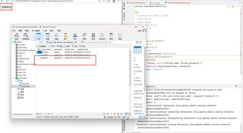 这里无论写什么都不会保存到数据库中去,因为在这一步,我们把数据进行了回滚,所以后续的操作都是无效的