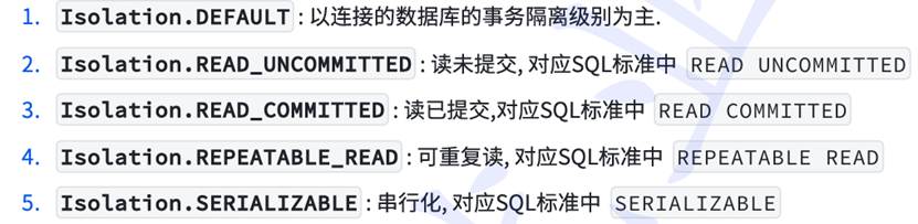 Spring的隔离级别有5种:
