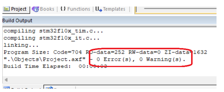 第三步:编译整个工程文件,查看是否无报错无警告。