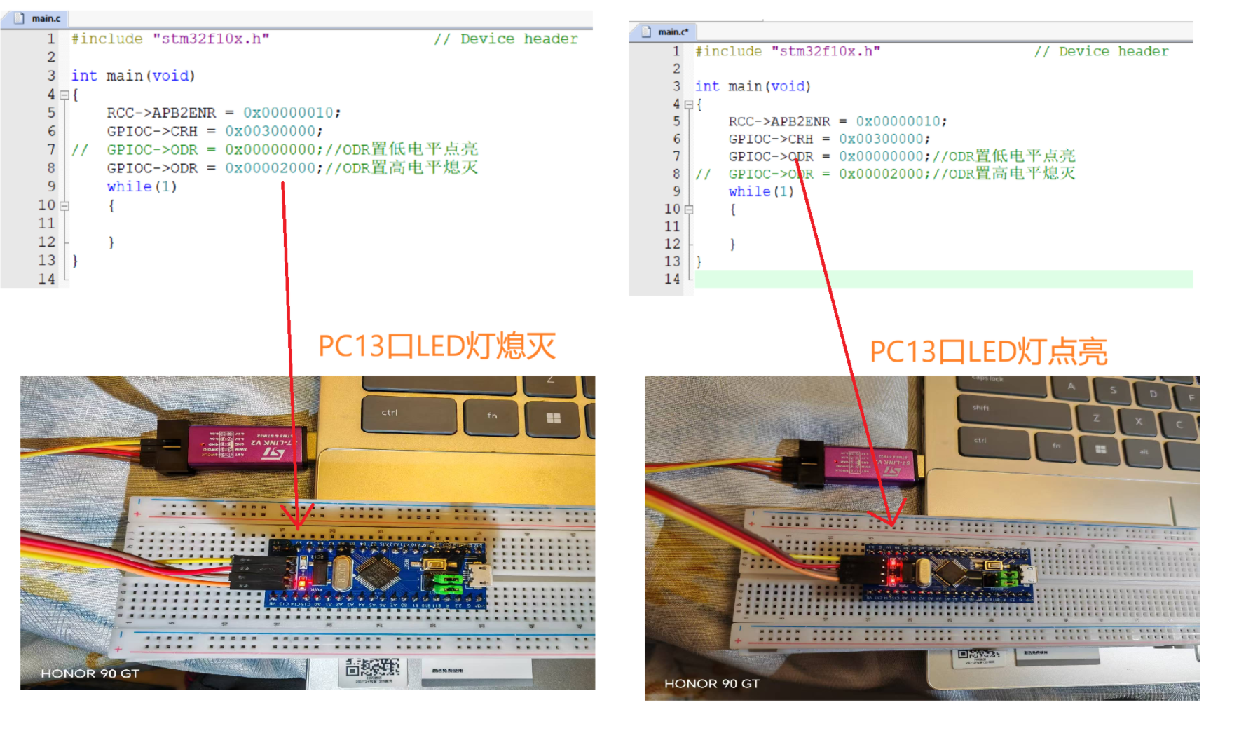 通过寄存器操作点亮和熄灭PC13口的led指示灯