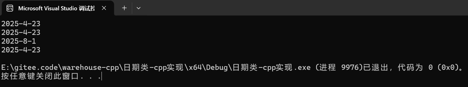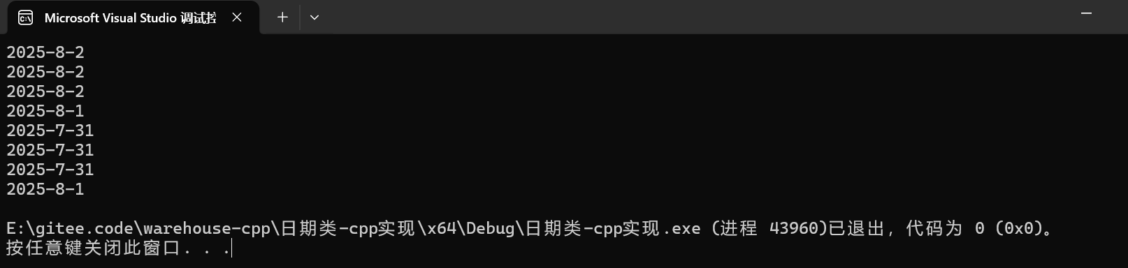 注意:这里面的打印、析构、拷贝、构造、赋值运算符重载这些函数之前实现过很多次的就不会再写了,大家可以自己去实现一下(当然Date类的析构、拷贝、赋值运算符重载都是可以不写的,使用默认生成的就足够了),最后也可以直接在代码总结里面看 。