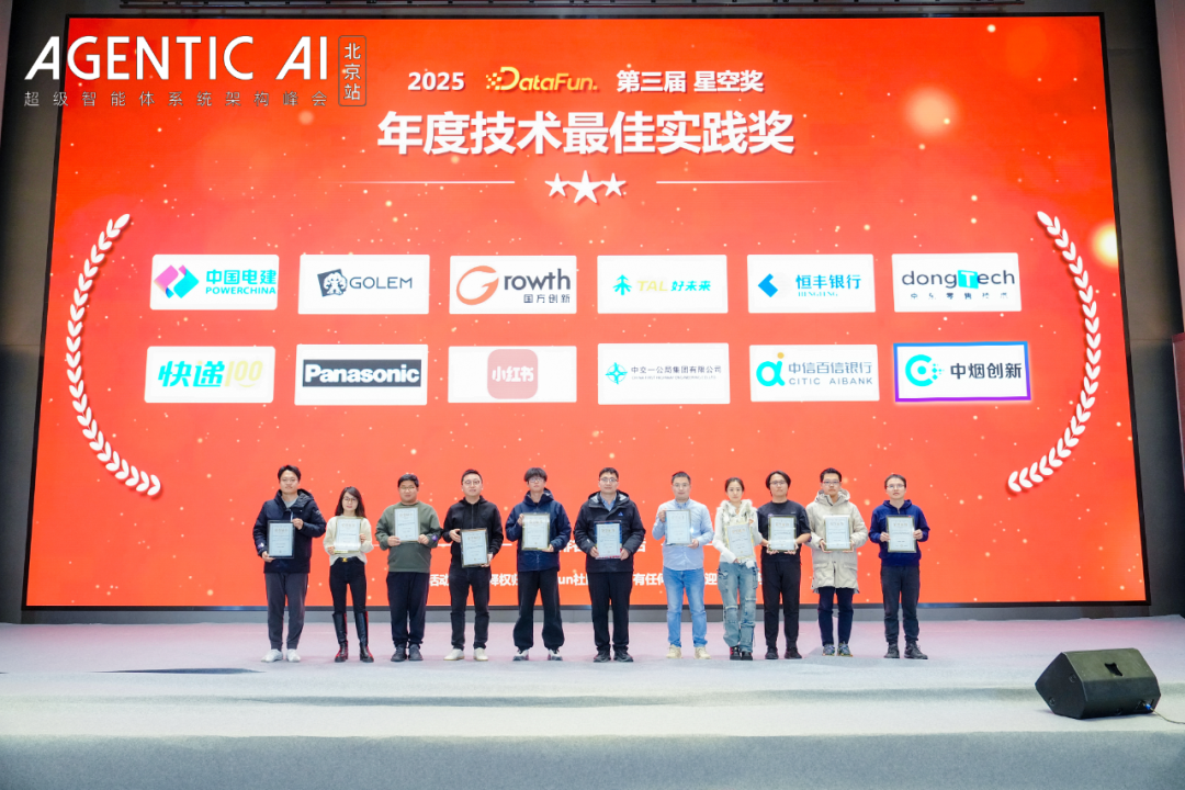 DataFun星空奖以"技术融合行业痛点"为标杆,旨在表彰具有实践意义的创新成果。在此评选中,**北京中烟创新科技有限公司(简称:中烟创新)****的"烟草专卖文书生成智能体与法规案卷评查智能体"获评"年度技术最佳实践奖"。**不仅是对其技术实力的权威认可,更是对其作为行业智能化转型标杆价值的充分肯定。
