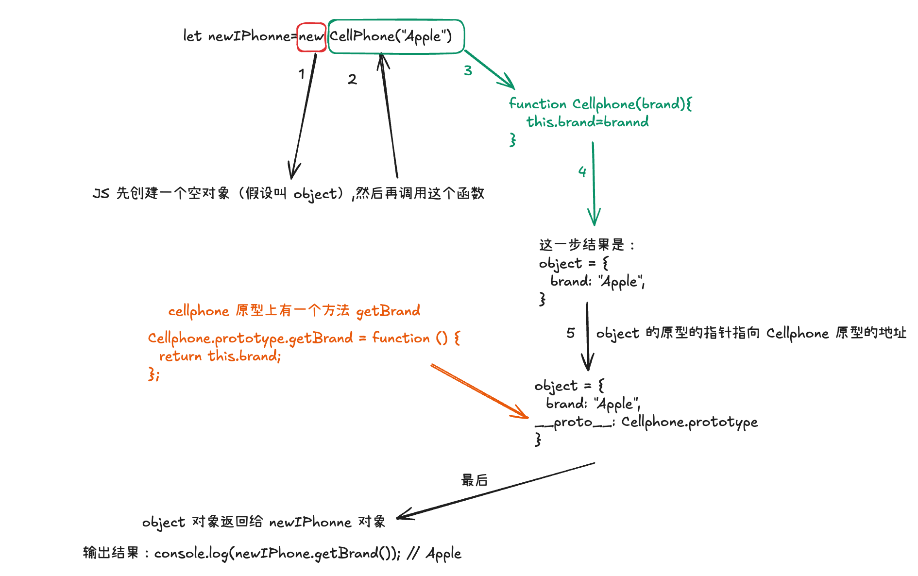 - 构造函数执行时,this 指向新创建的 object,所以 this.brand = brand 实际是在给 object 添加属性。