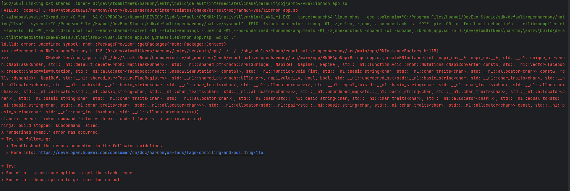 undefined symbol: rnoh::PackageProvider::getPackages(rnoh::Package::Context)