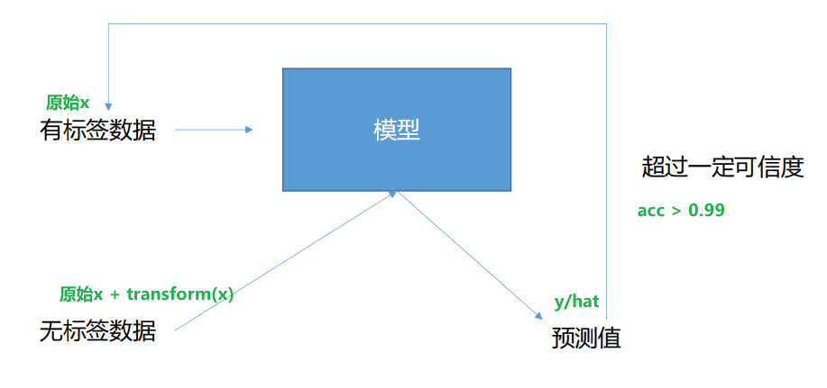对于伪标签等方法,训练过程可能是迭代的:训练模型 -> 生成伪标签 -> 加入训练集 -> 重新训练模型。