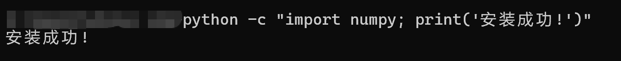 bashpython -c "import numpy; print('安装成功!')"