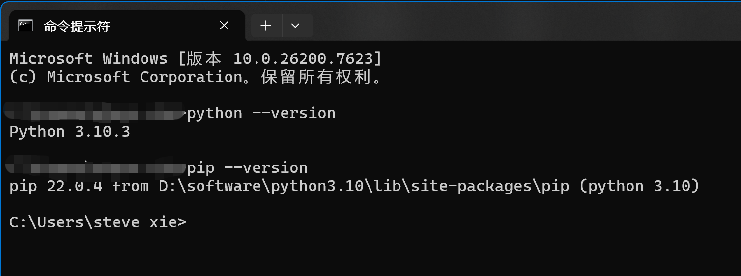 Python 3.11.4 pip 23.1.2 from C:\Users\你的用户名\AppData\Local\Programs\Python\Python311\Lib\site-packages\pip (python 3.11)