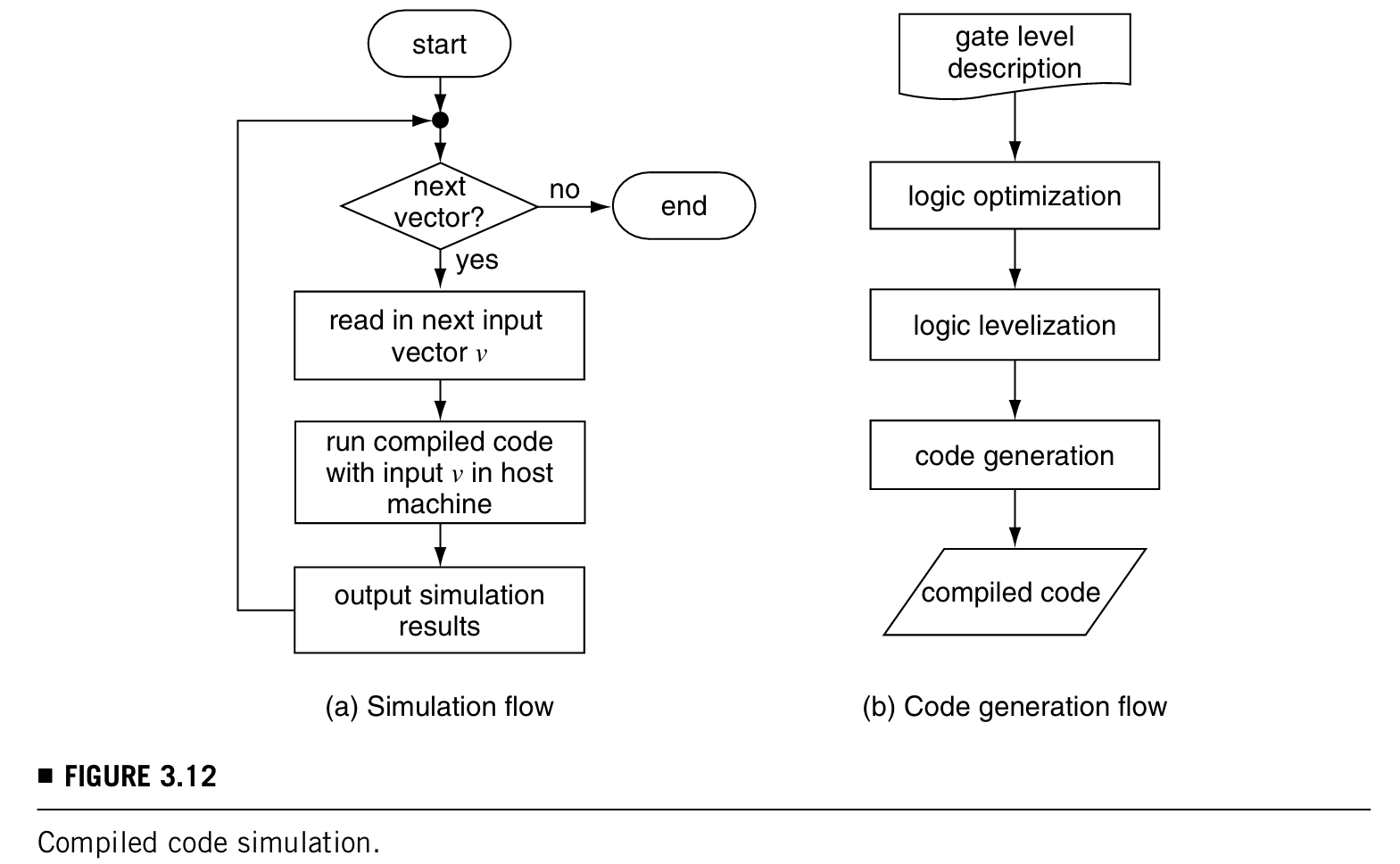 compiled-code simulation:就是模拟gates和他们之间互连的功能,形成一套机器指令,使代码和pattern配合在主机上执行。