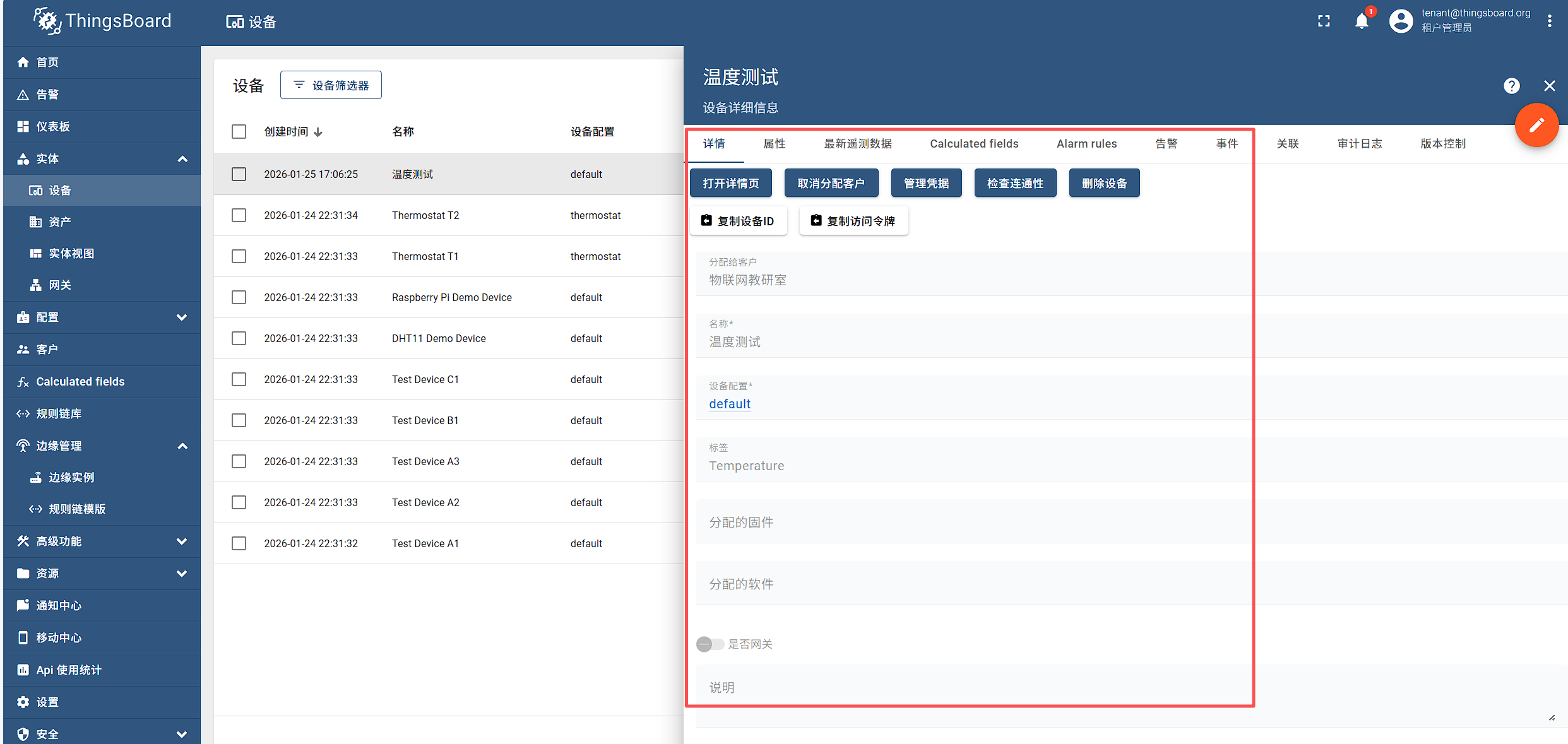本次在RK3588(Ubuntu 20.04)部署的ThingsBoard 4.3平台上,以租户管理员视角完成了设备与平台的连通性全维度测试,核心结论与关键要点如下: