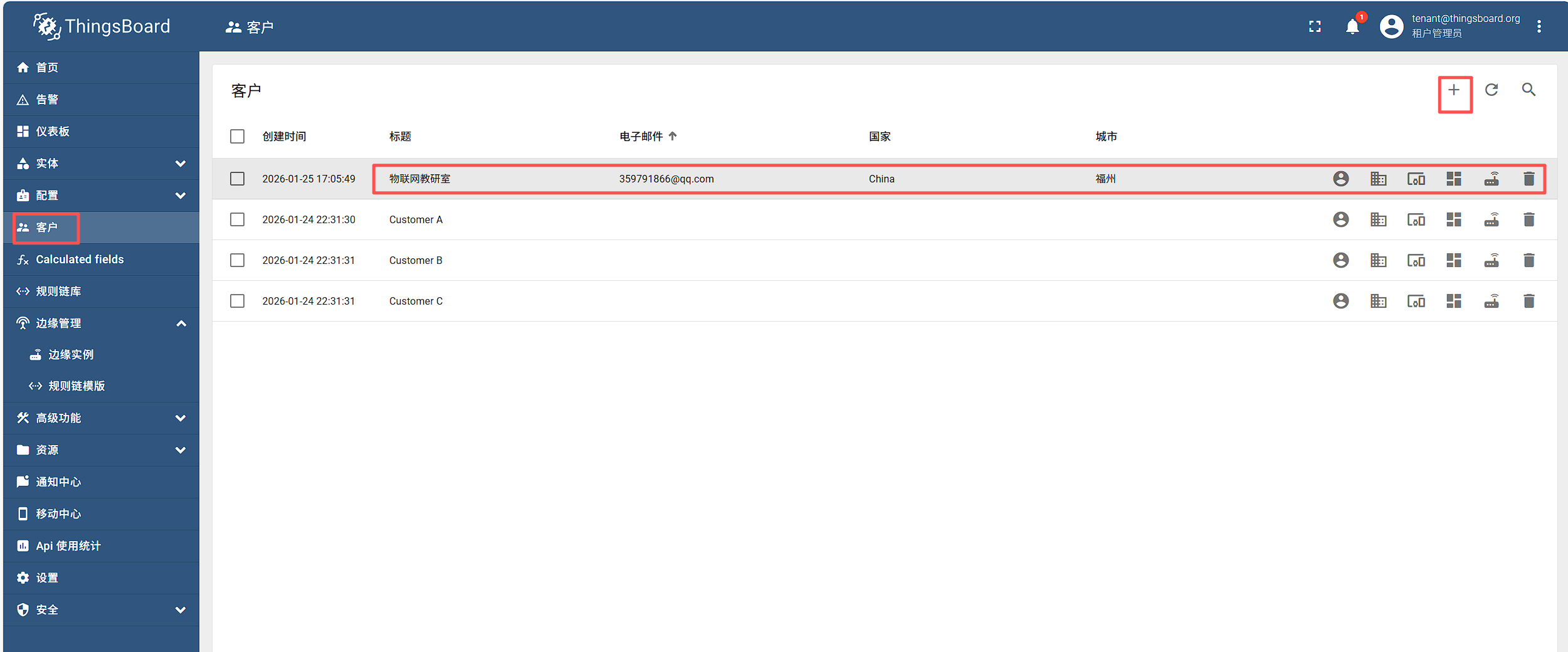 ThingsBoard作为轻量级物联网平台,租户管理员是承接「平台系统管理」与「终端设备对接」的核心角色,主要负责本租户下客户、设备的生命周期管理,以及设备与平台的通信验证。本次测试基于已部署在RK3588(Ubuntu 20.04 ARM64)环境的ThingsBoard 4.3平台,以租户管理员视角,遵循「创建客户→创建设备→多协议数据上报」的实际运维流程,对设备与平台的连通性展开全面验证。