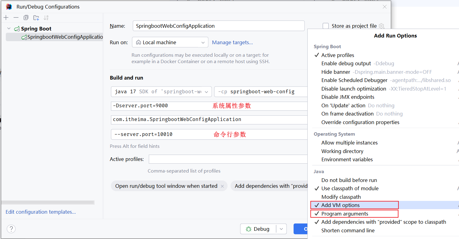 在idea中运行程序时,如何指定Java系统属性和命令行参数