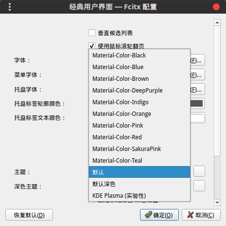 确定后会修改 ~/.config/fcitx5/conf/classicui.conf 里的 Theme=default 字段,立即生效。