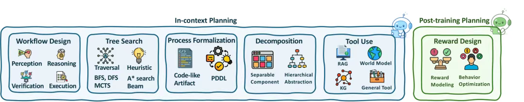 《Agentic Reasoning for Large Language Models》(https://arxiv.org/pdf/2601.12538,https://github.com/weitianxin/Awesome-Agentic-Reasoning)。看核心6个点,其中做了一些罗列,是个不错的索引。